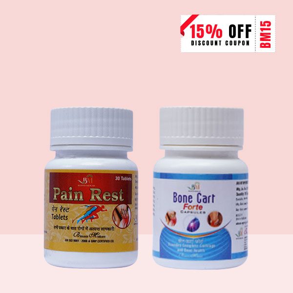 Treat severe joint pain and restore mobility. Pain Rest Tablets & Bone Cart Forte Capsules treat all the factors responsible for treating swelling and pain in the joints. It reduces the degradation in the joints due to aging and restores mobility. Pain Rest Tablets & Bone Cart Forte Capsules offer a safe solution against osteoporosis related disorders.